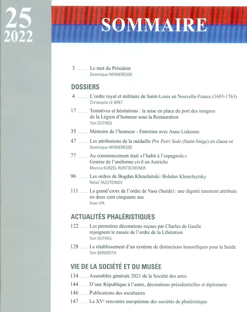2022-B25-1 L’ordre royal et militaire de Saint-Louis en Nouvelle-France (1693-1763), par Christophe LE BRET.