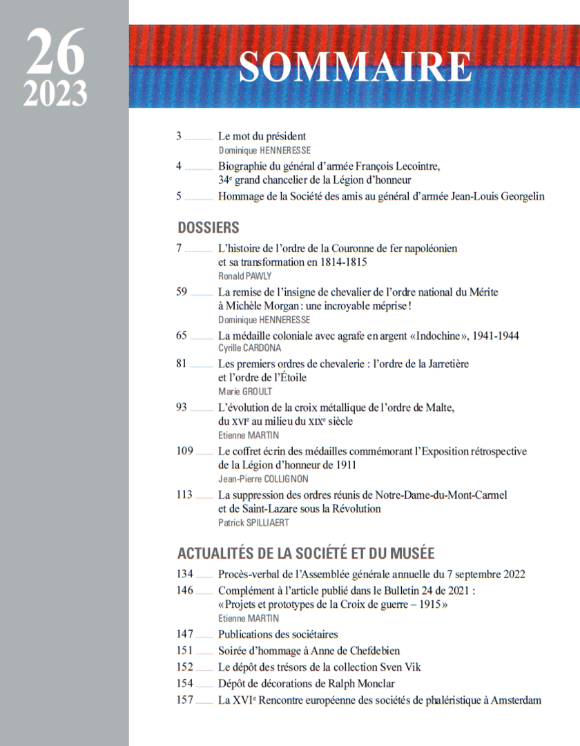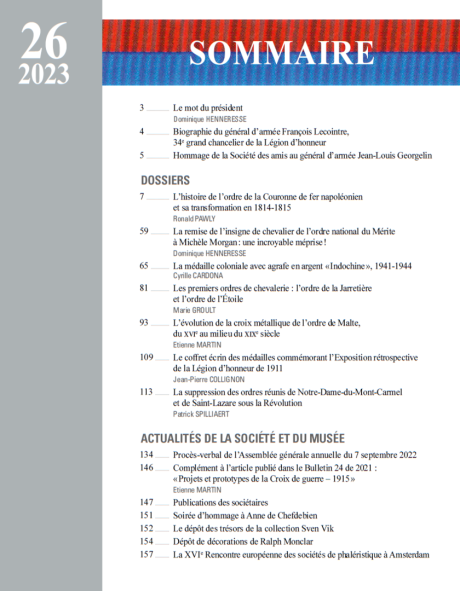 2023-B26-1 L’histoire de l’ordre de la Couronne de fer napoléonien et sa transformation en 1814-1815, par Ronald PAWLY.