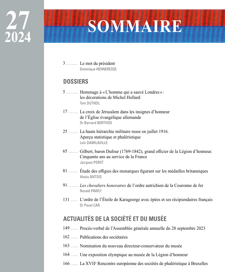 2024-B27-3 La haute hiérarchie militaire russe en juillet 1916. Aperçu statistique et phaléristique, par Loïc DAMILAVILLE.